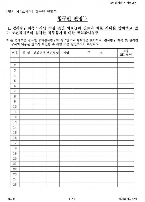 ‘의료급여 진료비 체불 사태’에 대한 ‘감사원 공익감사청구’에 많은 참여 부탁드립니다