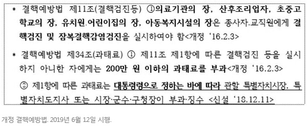 - 검진 안한 기관 최대 200만원 과태료 부과, 2019년 6월 12일부터 효력