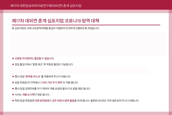 본 심포지엄은 코로나19 방역대책을 충실히 이행하여 안전하게 진행하도록 하겠습니다.