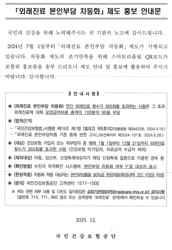 [건보공단]외래진료 본인부담 차등화 안내 홍보물(365일 초과 시 100분의90 부담)