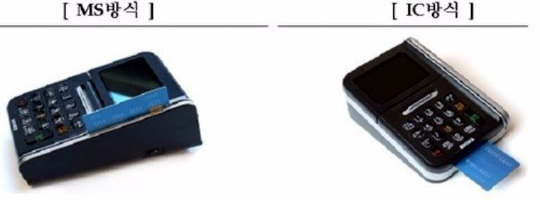 모든 회원님들은 위에 그림 우측에 있는 것 같은 'IC 방식‘이 가능한 카드 단말기로 교체 하셔야 합니다. 자세한 내용은 아래 글 참고 하시기 바랍니다.