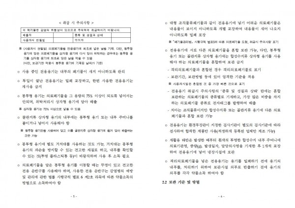 - 자원재활용센터 의료폐기물 전용용기 등 반입과 관련, 분리 배출 및 적정 관리 강화