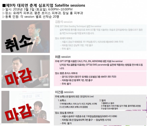 제9차 심포지엄 전날인 3월 3일 토요일에 개최 예정이었던 Satellite sessions 중 ‘김동석 session (SST 실전 live seminar)'이 사정상 취소되었습니다.