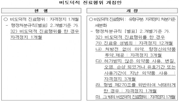 이 외 비도덕적 진료행위 유형 세분화 및 행정처분 기준도 정비했다.