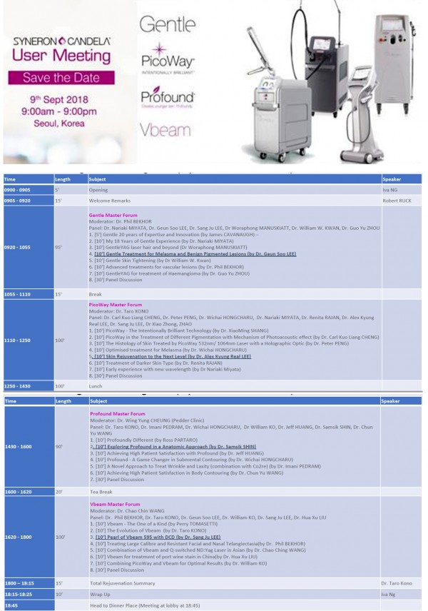 2018 Syneron-Candela 아시아 유저미팅 (9월 9일, 일요일)