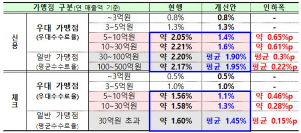 금융위는 우대수수료율이 적용되는 가맹점에 지난 25일부터 수수료 변경 통지를 진행 중이다.