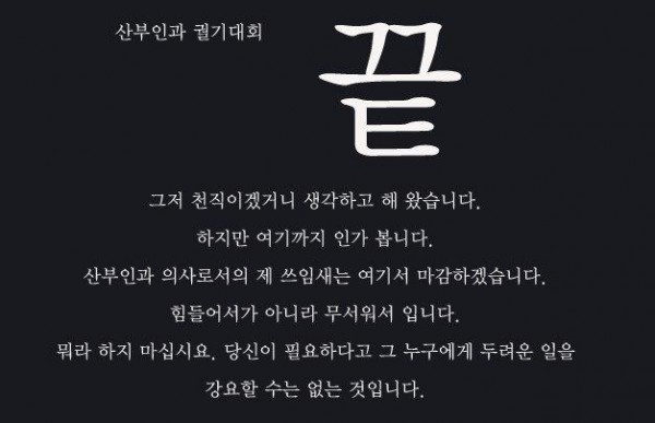 여러 회원님들의 작은 도움이 억울한 산부인과 동료에게 큰 도움이 되리라 생각합니다.