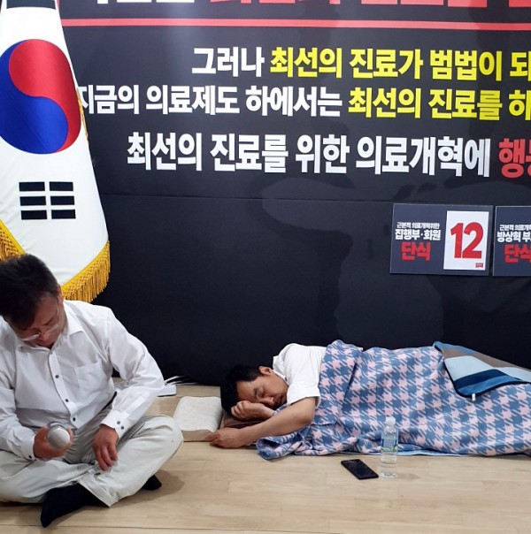 단식에 들어간 정성균 이사는 "단식 투쟁을 통해 왜곡된 한국 의료시스템을 정상화해야 한다는 의사 회원의 각성을 물결처럼 일어나도록 해야 한다"며 "집행부의 의료개혁에 대한 강한 의지가 전해질 수 있도록 하겠다"고 강조했다.