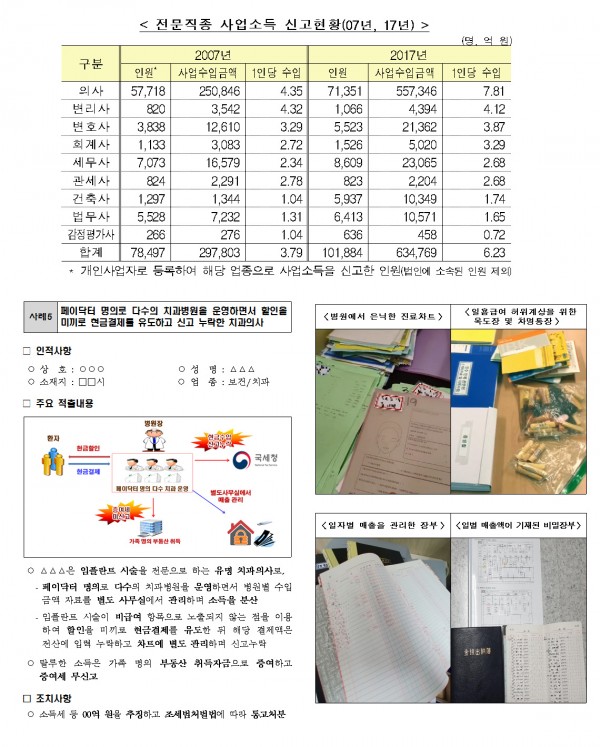 - 국세청, 병의원 '호황'업종 분류, 고의적 세금 포탈 검찰에 고발