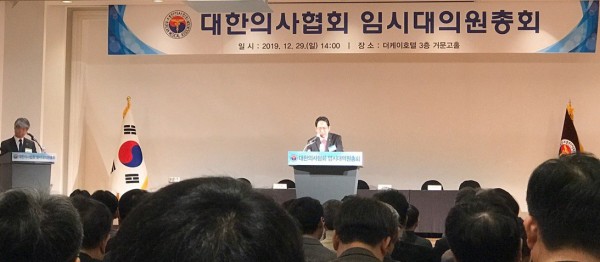 의협 대의원회는 29일 서울 더케이호텔에서 임시대의원 총회를 열어 지난 12월초 박상준 대의원(경남)이 제안하고 81명의 대의원이 찬성해 발의한 ▲의협 회장 불신임의 건과 ▲의협 정책 방향 정상화를 위한 특별위원회(가칭 비상대책위원회) 구성의 건을 표결했다.