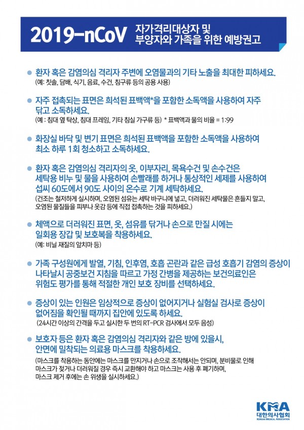 [의협]신종 코로나바이러스 감염증 환자와 감염의심자의 자가격리 요청 예방권고