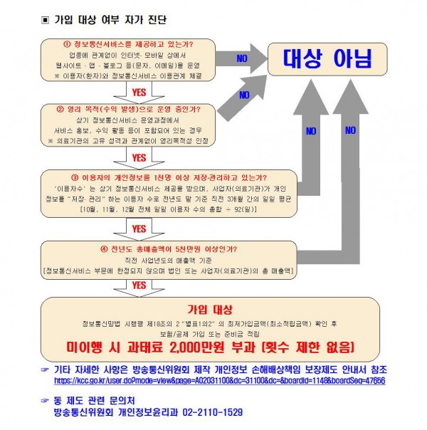 [의원협회]대부분의 의료기관은 개인정보손해배상책임보험 가입 의무 없음을 확인(Q&A)