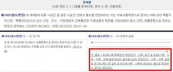 건축법 시행령 제14조 제4항은 2019년 10월 22일 개정, 2020년 1월 23일부터 시행됐다. 기존에 없던 조항이 추가되면서, 많은 업종이 기재사항 변경신청을 의무적으로 해야만 입점이 가능해졌다.
