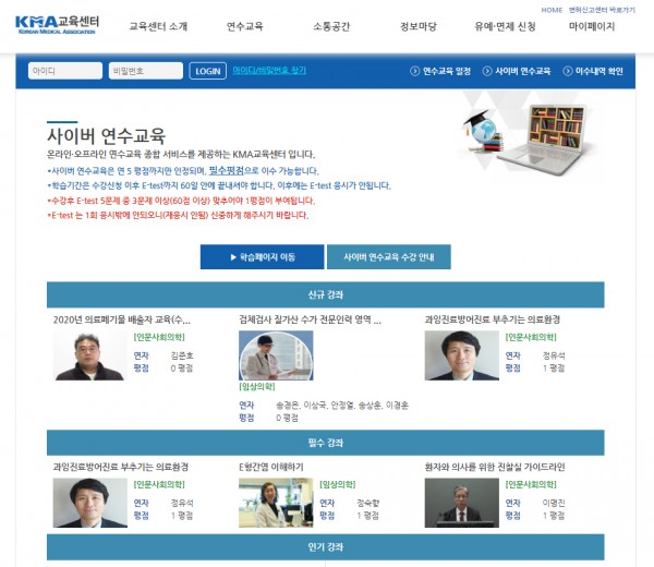 ▶대한의사협회 홈페이지 KMA 교육센터 사이버 연수교육 안내: