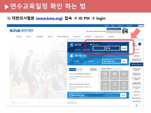 1) 대한의사협회 (www.kma.org) 접속 --> ID PW --> login