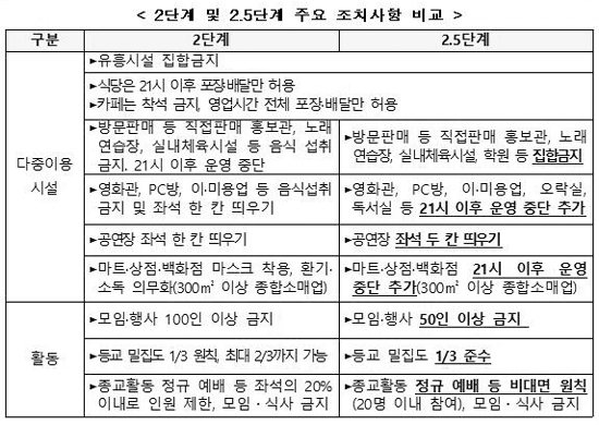 수도권에서 시행되는 2.5단계 조치의 상세한 내용은 붙임1에 자세히 설명되어 있다.