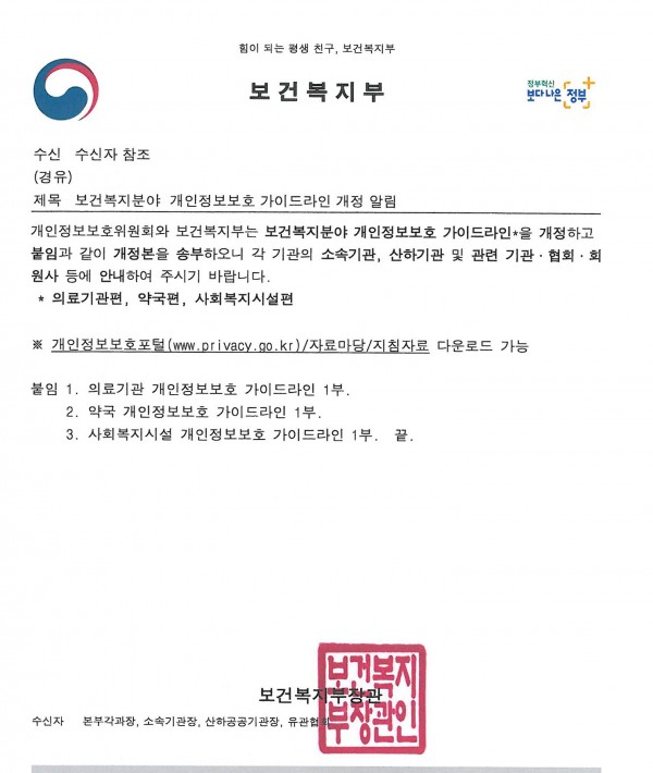 [복지부]보건복지분야 개인정보보호 가이드라인 개정 알림