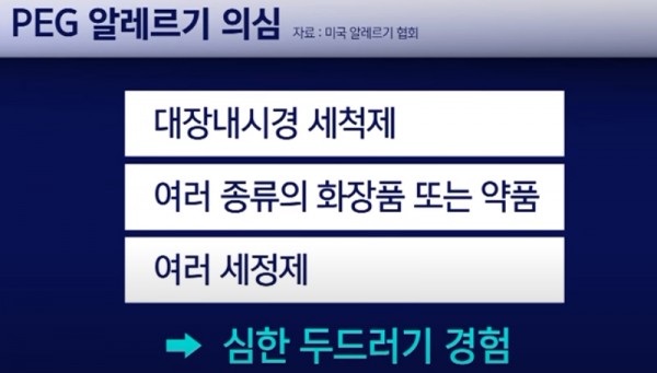 대부분 'PEG'라는 물질에 알레르기 반응이 있는 사람이었습니다.