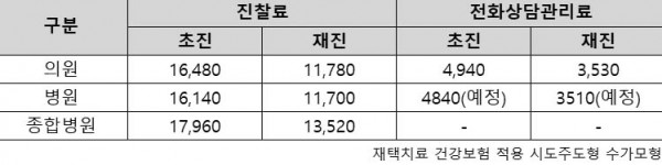 - 의원급은 기존 진찰료(초진료 1만 6480원·재진료 1만 1780원)에 전화상담관리료 초진 4940원·재진 3530원을 추가