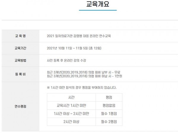 - 교육명 : 2021년도 일차의료기관 감염병 대응 온라인 연수교육