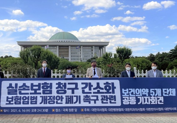 6월 16일 오후 2시 30분, 국회 정문 앞에서 개최된 "실손보험 청구 간소화 보험업법 개정안 폐기 촉구 관련 보건의약 5개 단체 공동 기자회견"을 개최하였습니다.