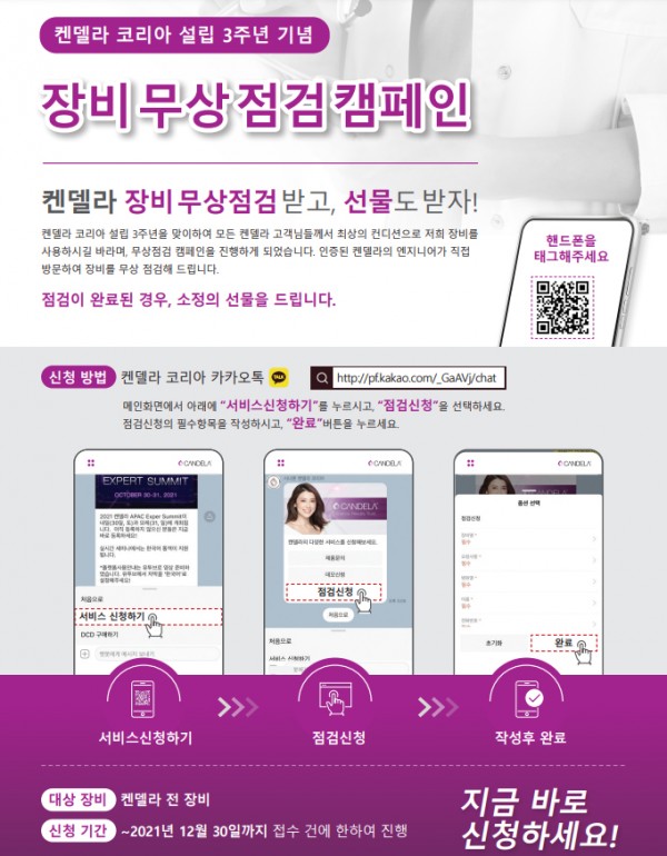 Candela Korea가 창립 3주년을 맞아 장비 무상점검 이벤트를 시행하다고 합니다.