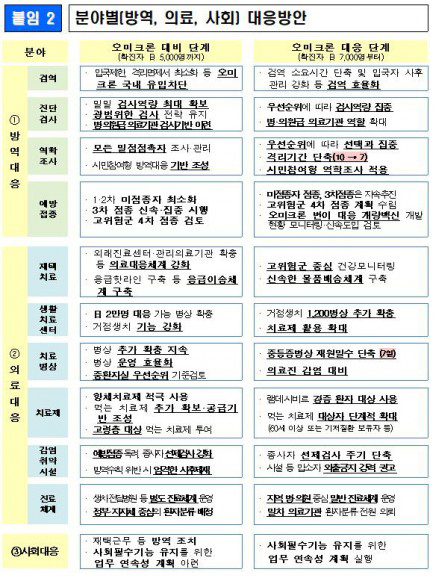 방역당국은 코로나19 오미크론 확산에 대비, 방역·의료·접종·치료제 등 분야별 대응 방안을 내놨다.