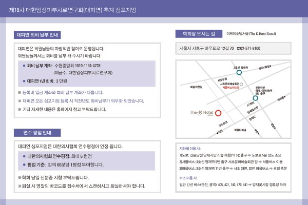 ▷회비 납부 계좌: 수협중앙회 1010-1194-4728 (예금주: 대한임상피부치료연구회)