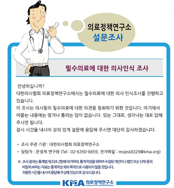 대한의사협회 의료정책연구소에서 필수의료에 대한 의사 인식조사를 시행한다고 합니다.