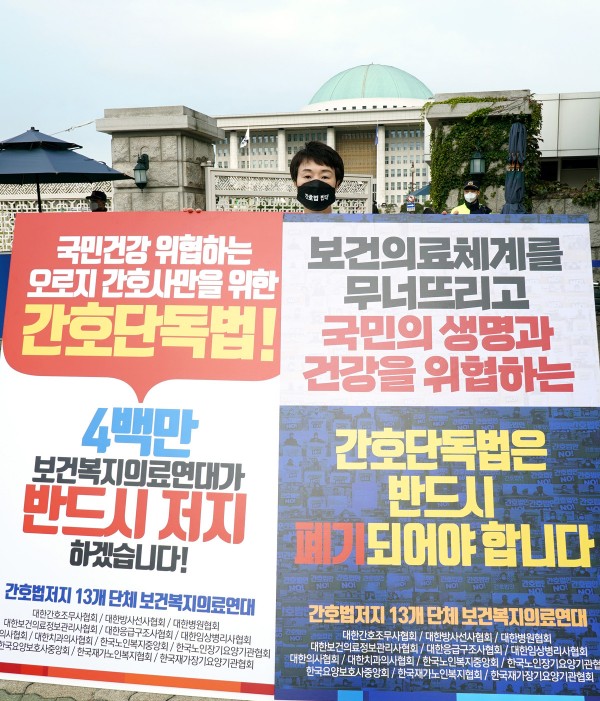 한편, 대한간호조무사협회는 지난 8월 23일 공식출범한 ‘간호법 저지 13개 단체 보건의료연대’ 구성원으로서 보건의료 직역 간 갈등과 혼란을 일으키며, 간호조무사 생존권에 위협이 되는 ‘간호법’ 저지를 위해 강경 대응을 천명한 바 있다.