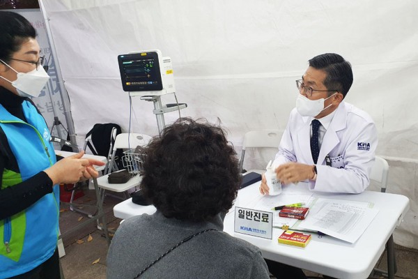 희생자 유족과 조문객들의 건강을 돌보기 위해 서울광장에 설치된 합동분향소 내 현장 진료소가 31일 오후부터 운영 중인 가운데, 대한의사협회 이필수 회장이 10월 31일 오후와 11월 1일 오전에 진료소에 나와 의료지원 활동을 펼쳤다.
