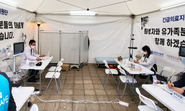 한편 10월 31일 오후 이필수 의협 회장에 이어 같은 날 저녁에는 이정근 의협 상근부회장이 나서 늦은 밤까지 합동분향소를 찾은 조문객들을 지원한 바 있으며, 진료소 운영 기간 동안 긴급의료지원단 의료진들의 의료지원 활동이 지속될 예정이다.