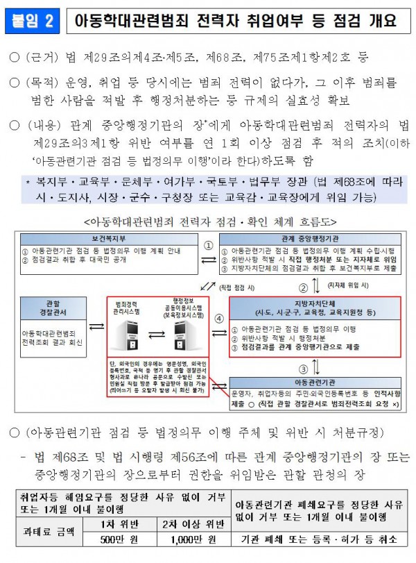 2. 아동학대관련범죄 전력자 취업 여부 등 점검 개요