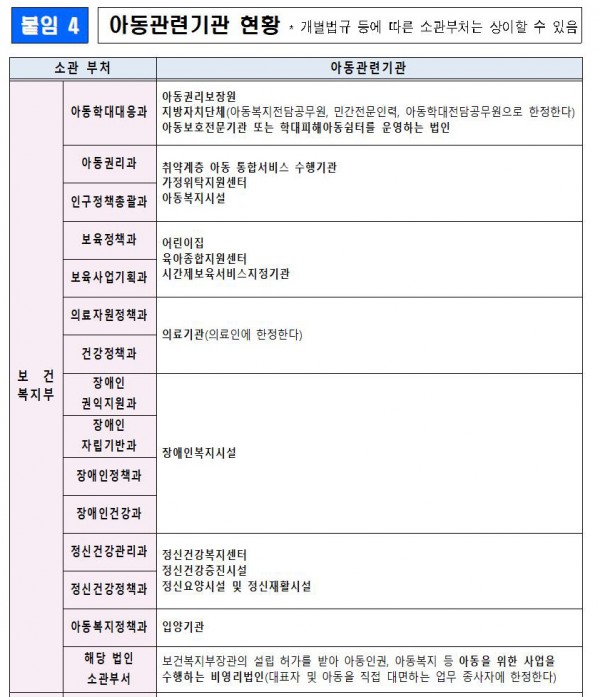 - 아동관련기관(38만 6,357개소) 종사자(260만 3,021명) 합동점검 실시, 아동권리보장원 홈페이지에 결과 공개 -
