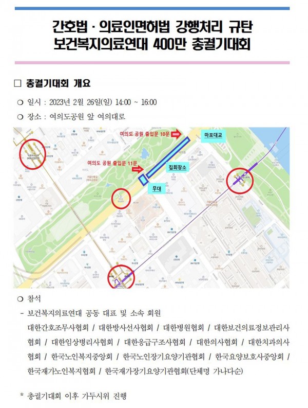 ▶제목: 간호법 저지 총력투쟁을 위한 400만 「보건복지의료연대 총궐기대회」 개최 안내