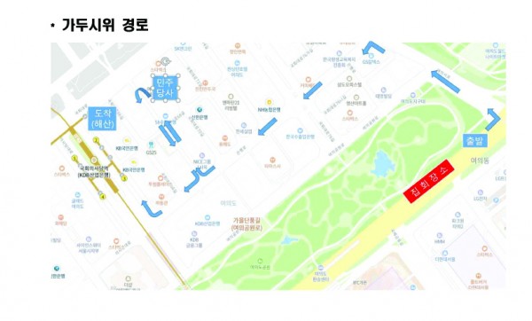 다. 장소 : 국회 여의도공원 앞 여의대로상 (여의도공원 10문~11문 6개 차로)
