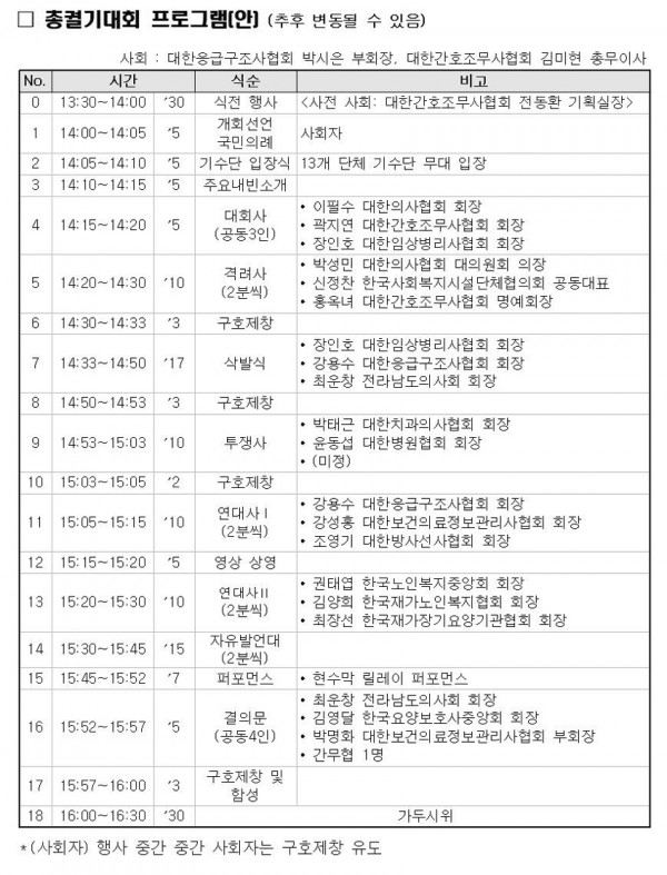 마. 참석대상 : 전국 의사회원 및 보건복지의료연대 소속 회원 등