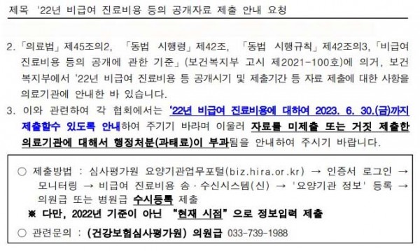 [심평원]'22년 비급여 진료비용 등의 공개자료 제출 안내 요청 대피연 메일보내기 이름으로 검색 0 11,797 2023.06.01 11:09 첨부파일 - 첨부파일: [심평원]22년 비급여 진료비용 등의 공개자료 제출 안내 요청2.jpg (81.1K) 296 짧은주소 - 짧은주소: https://www.laserpro.or.kr:443/bbs/?t=c0H 주소복사 × 짧은 글주소 복사 Note! 위 주소를 드래그, 복사(Ctrl+C)하여 사용하세요. 이전글다음글 목록 본문 [심평원]'22년 비급여 진료비용 등의 공개자료 제출 안내 요청 이전글다음글 목록 댓글목록 등록된 댓글이 없습니다.