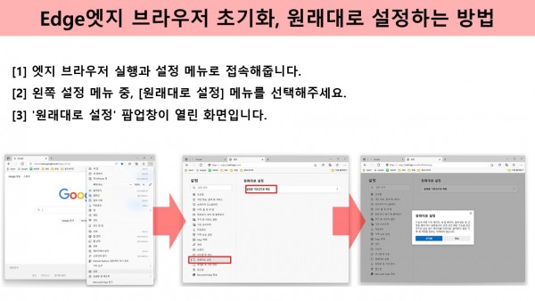 *엣지 브라우저 초기화, 원래대로 설정하는 방법