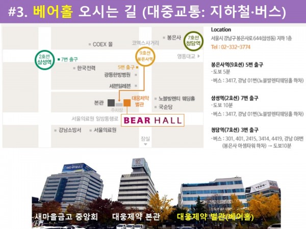 ‘베어홀’ 오시는 길(교육심포지엄 학회장소, 위치.대중교통.주차, Bear Hall)