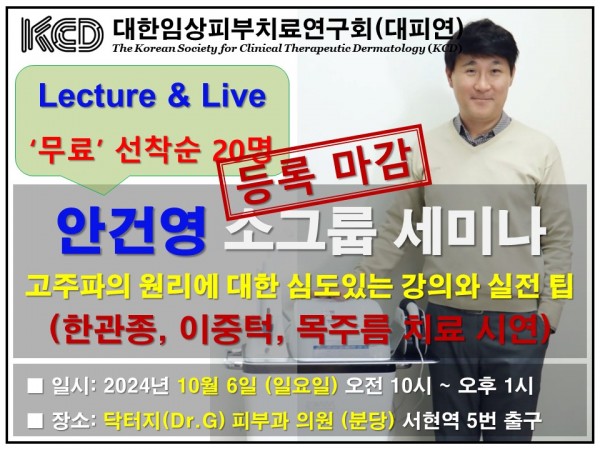 [마감]안건영 소그룹 세미나 (고주파를 이용한 한관종, 이중턱, 목주름 치료).10/6(일)