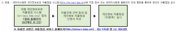 ※ 자세한 사항은 자율점검 서비스 홈페이지(http://privacy.kma.org) 《☞ FAQ》및《☞ 자료실》