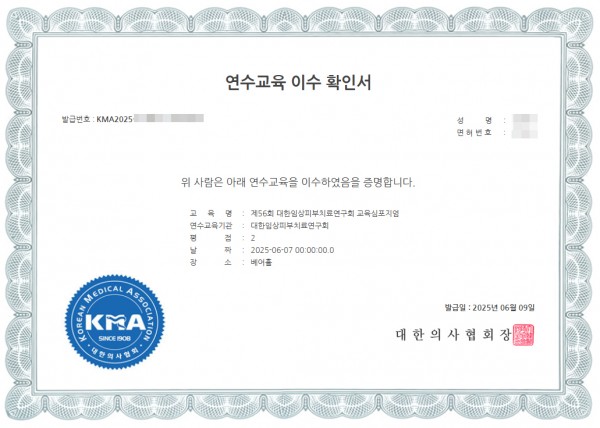 대한임상피부치료연구회(대피연)은 의협 공식 연수교육기관입니다.