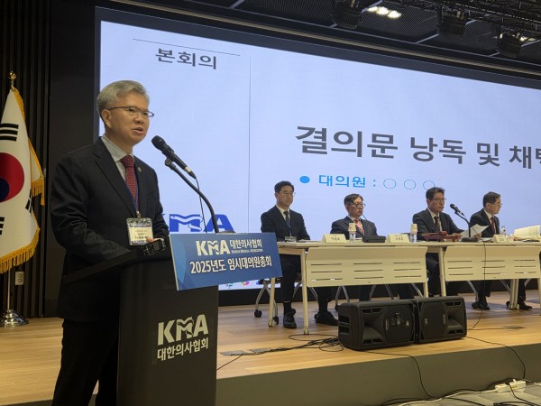 2025년 10월 25일 오후 4시 30분부터 대한의사협회 회관 지하 1층 대강당에서 진행된 대한의사협회 2025년도 긴급 임시대의원총회 결과입니다.