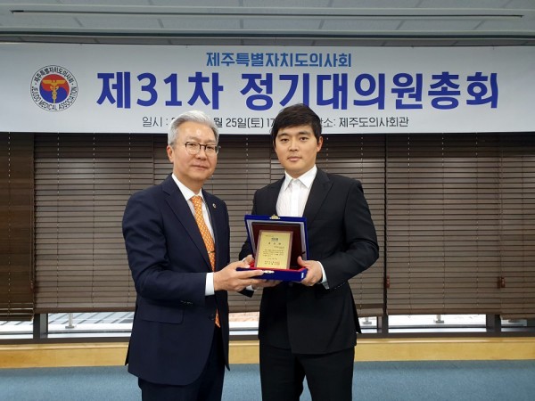 시상은 지난 3월 25일 개최된 제주특별자치도의사회 제31차 정기대의원총회에서 이필수 대한의사협회장을 대신하여 김성남 부회장이 시상 하였습니다.