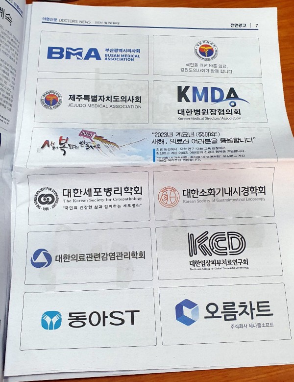 대피연이 2023년 1월 9일자 의협 신문에 창간 기념 광고를 게재하였습니다.