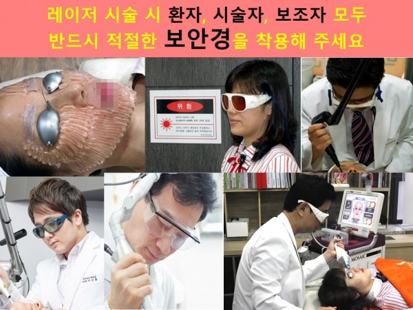 레이저 시술 시 환자, 시술자, 보조자 모두 반드시 적절한 보안경을 착용해 주세요