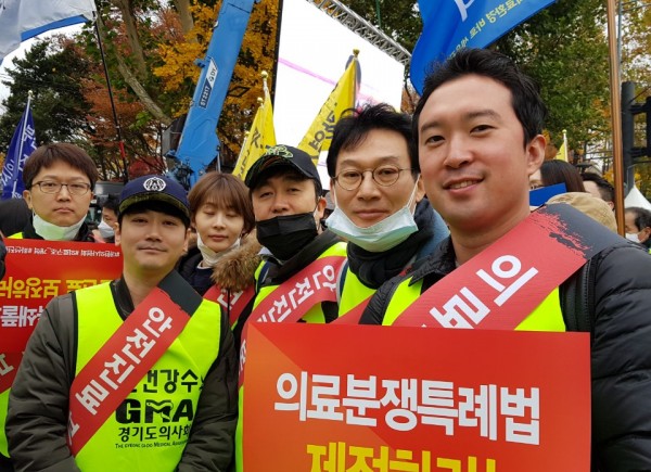 늦가을 쌀쌀한 날씨에도 전국에서 대한문 앞에 모인 전국 의사회원들은 "선한 의도로 환자를 진료했는데, 진료 결과가 좋지 않다는 이유로 의사를 구속했다"며 분노의 함성을 토했다.