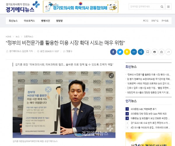 [경기메디뉴스]"정부의 비전문가를 활용한 미용 시장 확대 시도는 매우 위험“
