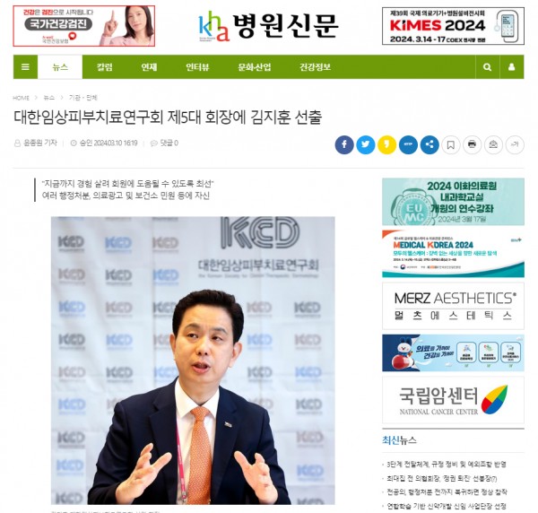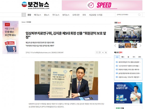 [보건신문]임상피부치료연구회, 김지훈 제5대 회장 선출 "회원권익 보호 앞장“